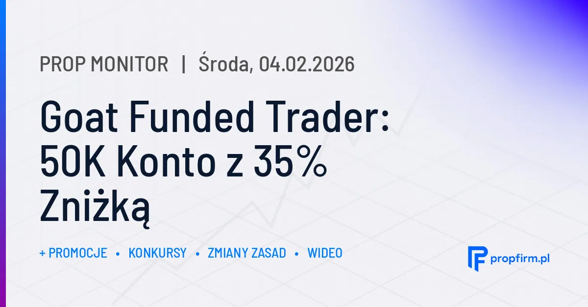 Goat Funded Trader uruchomił wyjątkową promocję BOGO + 35% OFF! To doskonała okazja, aby podwoić swoje szanse i obniżyć koszty. Możesz zdobyć konto instant (natychmiastowe, bez challengu) o wartości 50 000 USD już za 317 USD zamiast 488 USD. 🎁 Oferta BOGO: Po osiągnięciu wypłaty, otrzymasz kolejne konto GRATIS! 🔑 Kod rabatowy: BOGO35 🗓️ Data: Niedziela, 4 lutego 2026. Oferta jest ograniczona czasowo, więc nie przegap tej okazji! 👉 Sprawdź szczegóły oferty