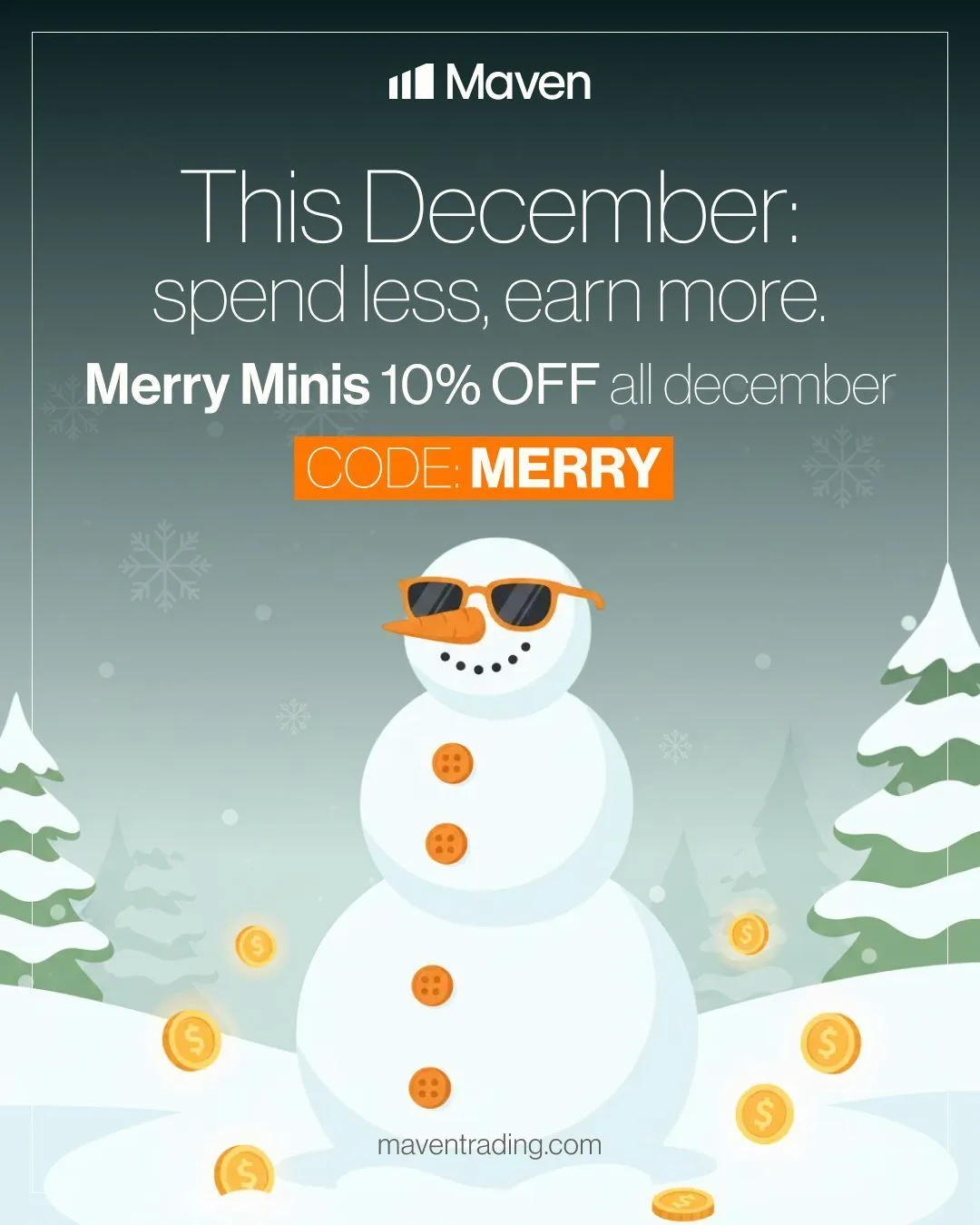 Prop firma Maven oferuje 10% zniżki na wyzwania Merry Minis przez cały grudzień!