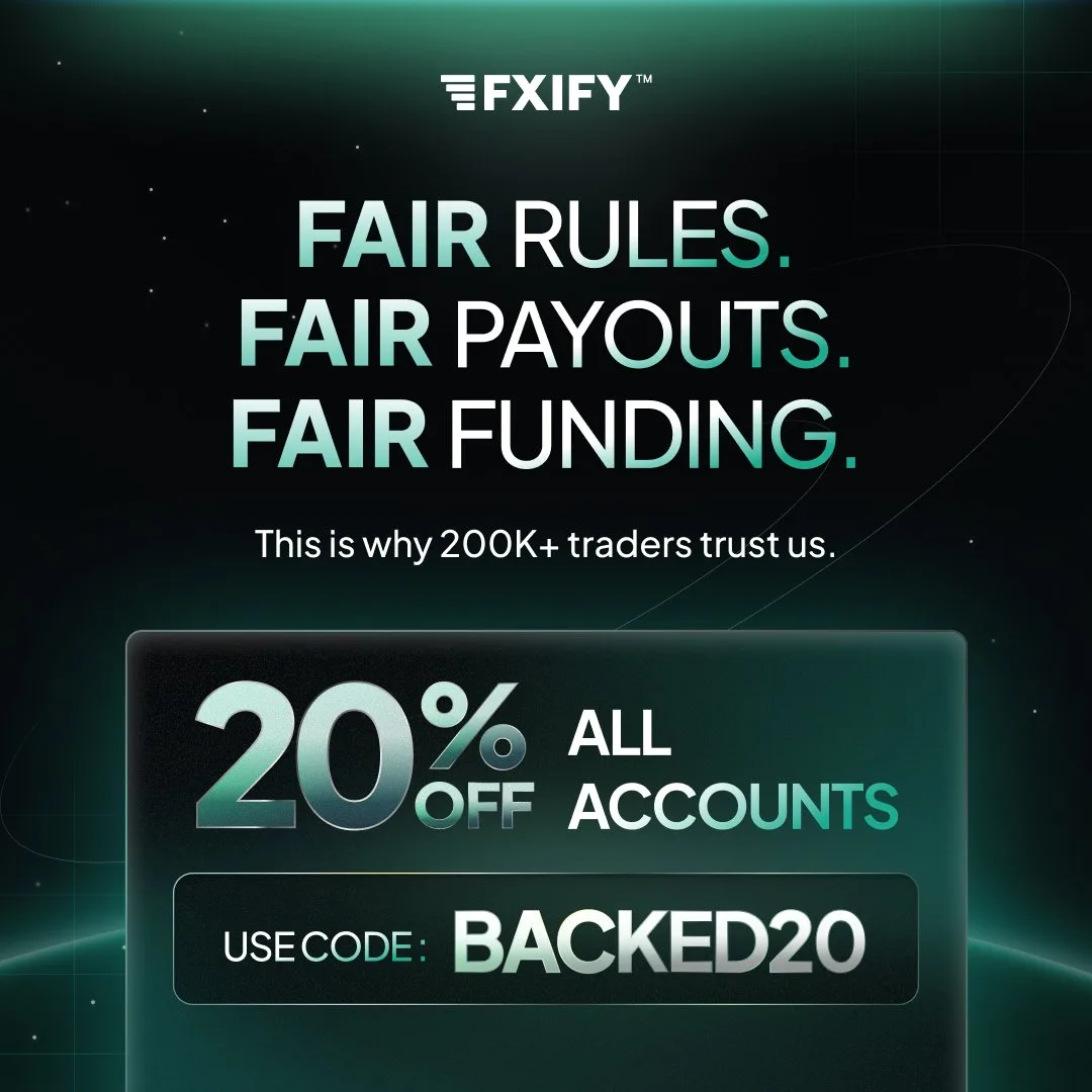 Fxify oferuje 20% zniżki na wszystkie konta! Ponad 200,000 traderów zaufało firmie ze względu na transparentne zasady, wiarygodne wypłaty i zaufane finansowanie. Jeśli chcesz dowiedzieć się więcej o tej firmie, sprawdź naszą recenzję FXIFY, gdzie szczegółowo opisujemy ich ofertę.