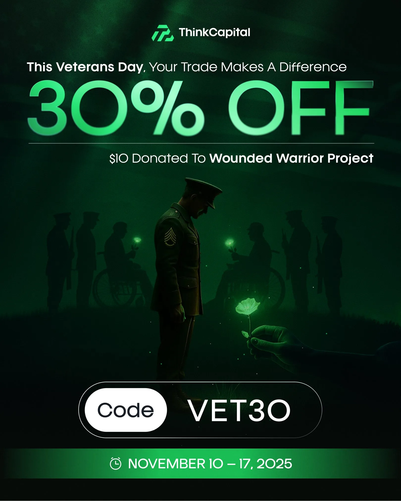 Z okazji Dnia Weterana, Think Capital oferuje 30% zniżki na wszystkie wyzwania oraz przekazuje $10 na rzecz Wounded Warrior Project z każdego zakupu.