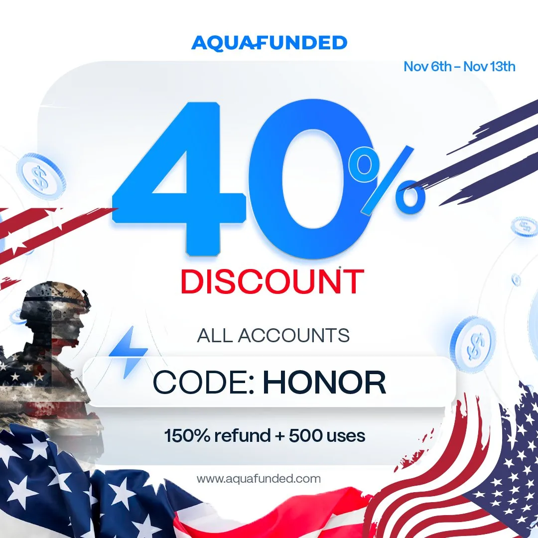 Aqua Funded oferuje ograniczoną czasowo promocję: 40% zniżki na wszystkie rodzaje kont.