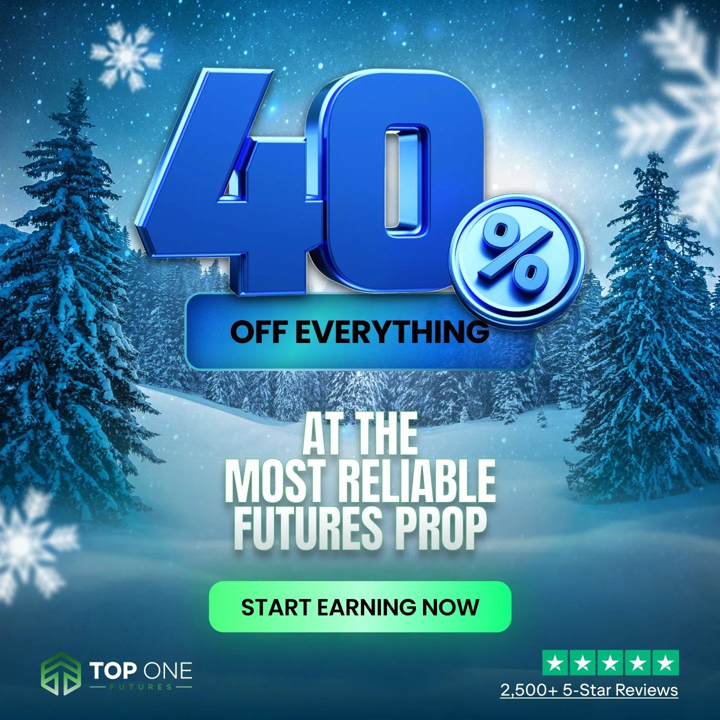 Top One Futures ogłasza promocję, dzięki której możesz uzyskać 40% zniżki na wszystko. Jeżeli czekałeś na odpowiedni moment, aby zacząć lub rozwinąć swój futures trading, to jest to właśnie ten moment.