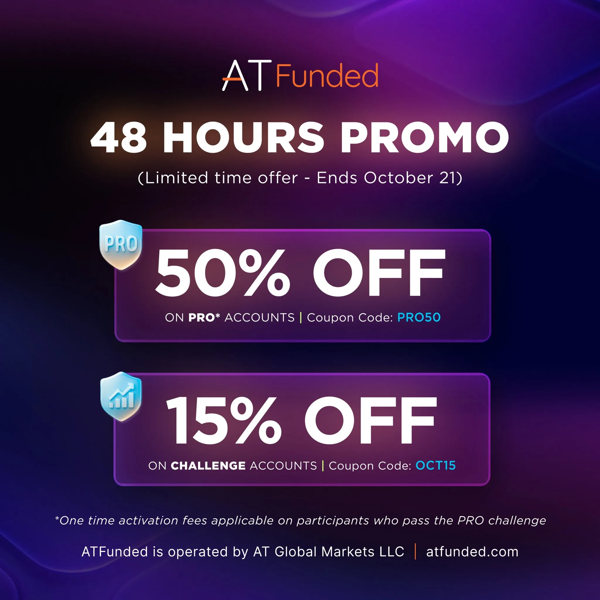 ATFunded ogłasza 48-godzinną promocję! Nie przegap okazji, by zaoszczędzić na dostępie do kont proptradingowych.