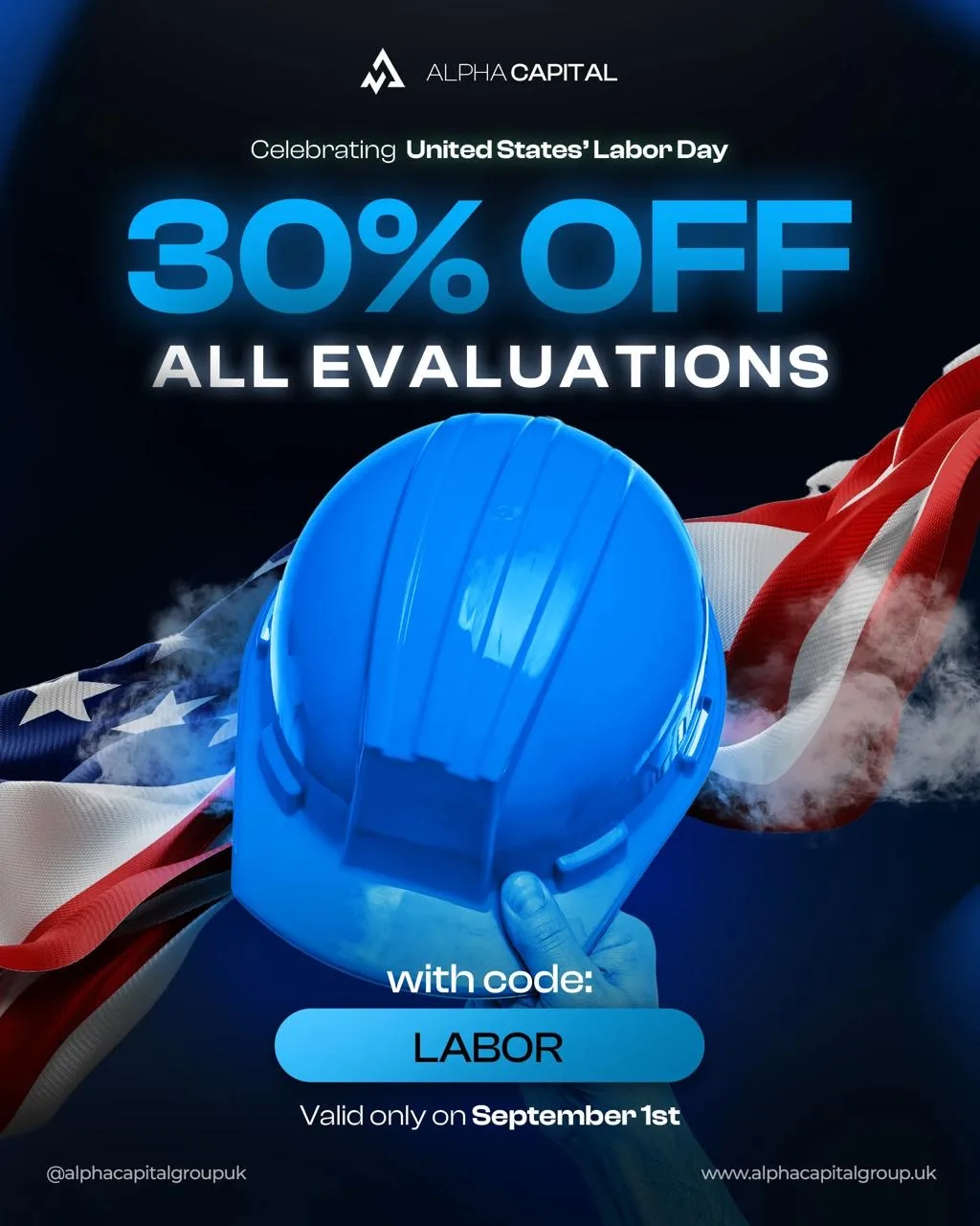 Prop firma Alpha Capital Group świętuje amerykański Dzień Pracy, oferując 30% zniżki na wszystkie evalaucje!