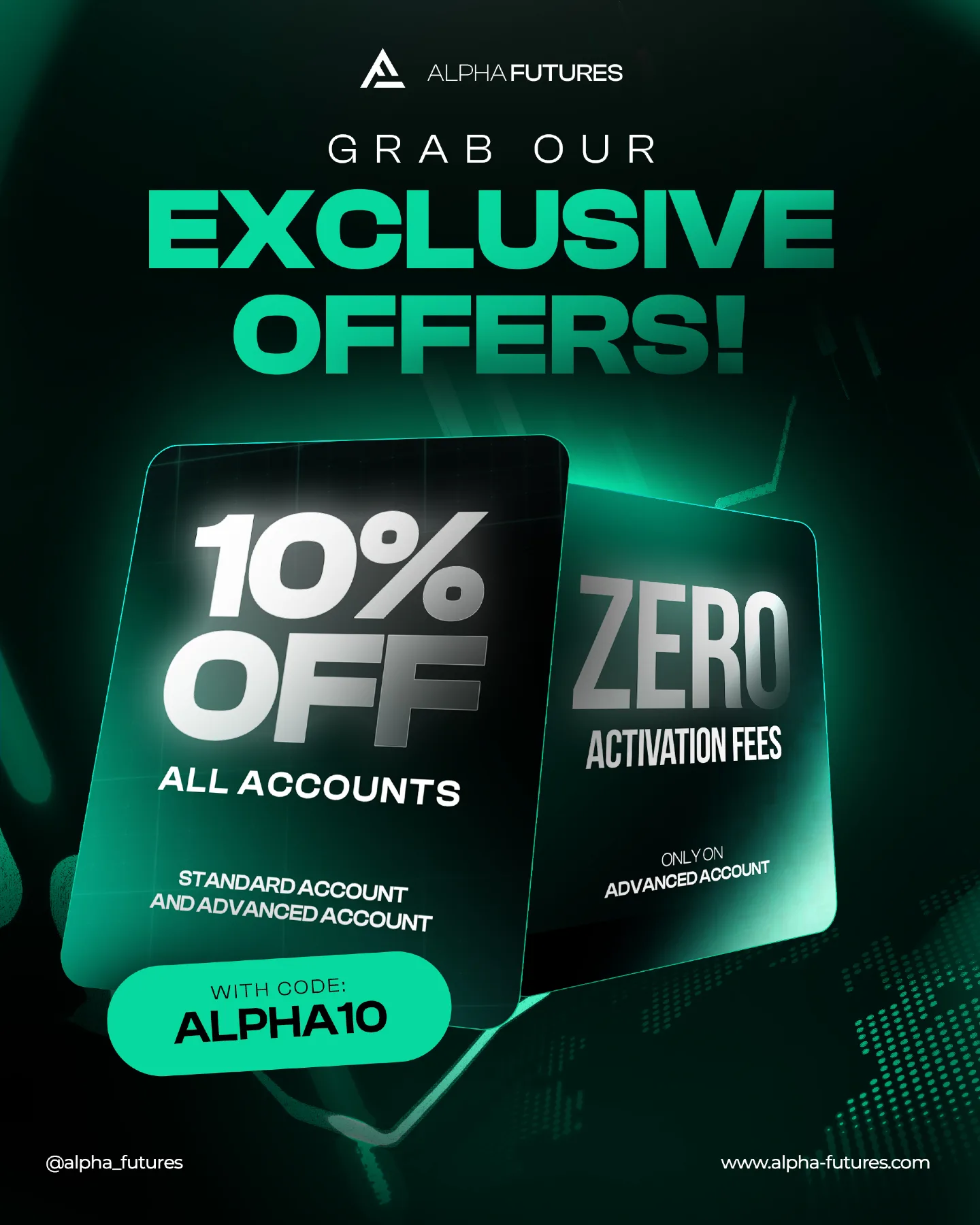 Prop firma Alpha Futures ogłosiła promocję, w której oferuje 10% zniżki na wszystkie rodzaje kont (Standard i Advanced) oraz darmową aktywację dla kont Advanced. To świetna okazja, aby przetestować elastyczne zasady handlu oferowane przez Alpha Futures przy obniżonym koszcie startu.