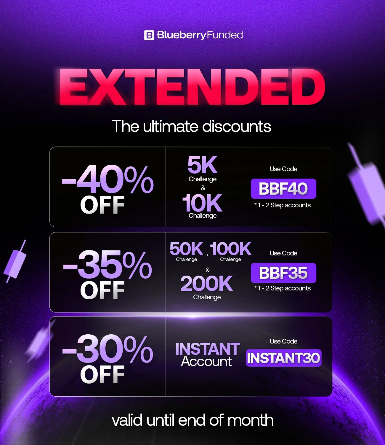 - 35% zniżki na konta 50K, 100K i 200K (kod: BBF35). Konta te są 1-2 etapowe.
