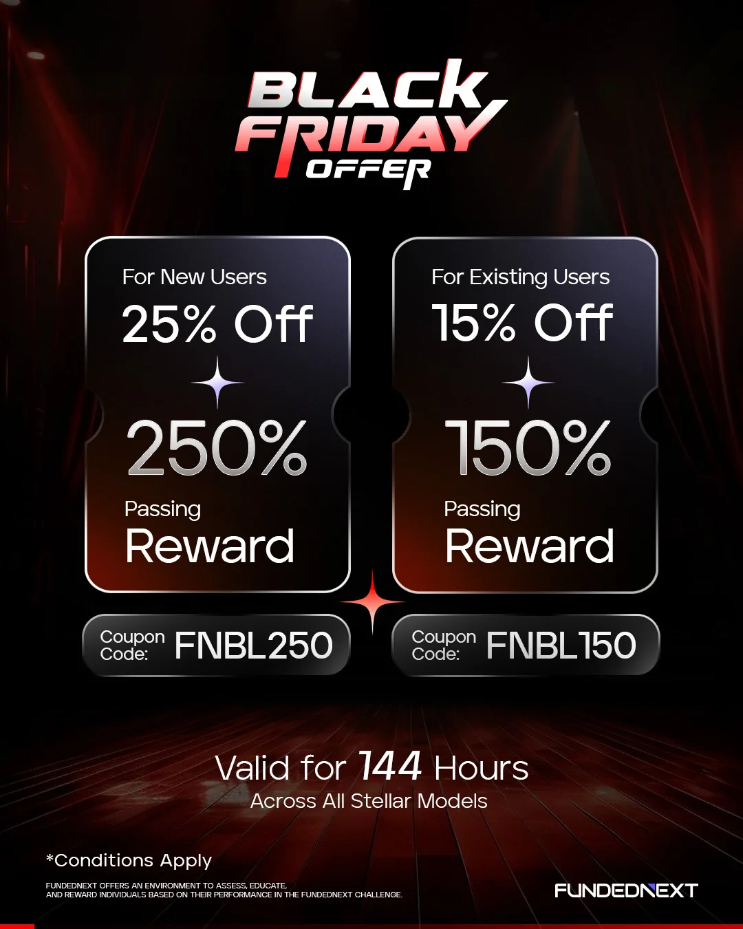 FundedNext ogłasza promocję z okazji Black Friday, oferując specjalne zniżki i zwiększone nagrody zarówno dla nowych, jak i obecnych użytkowników.