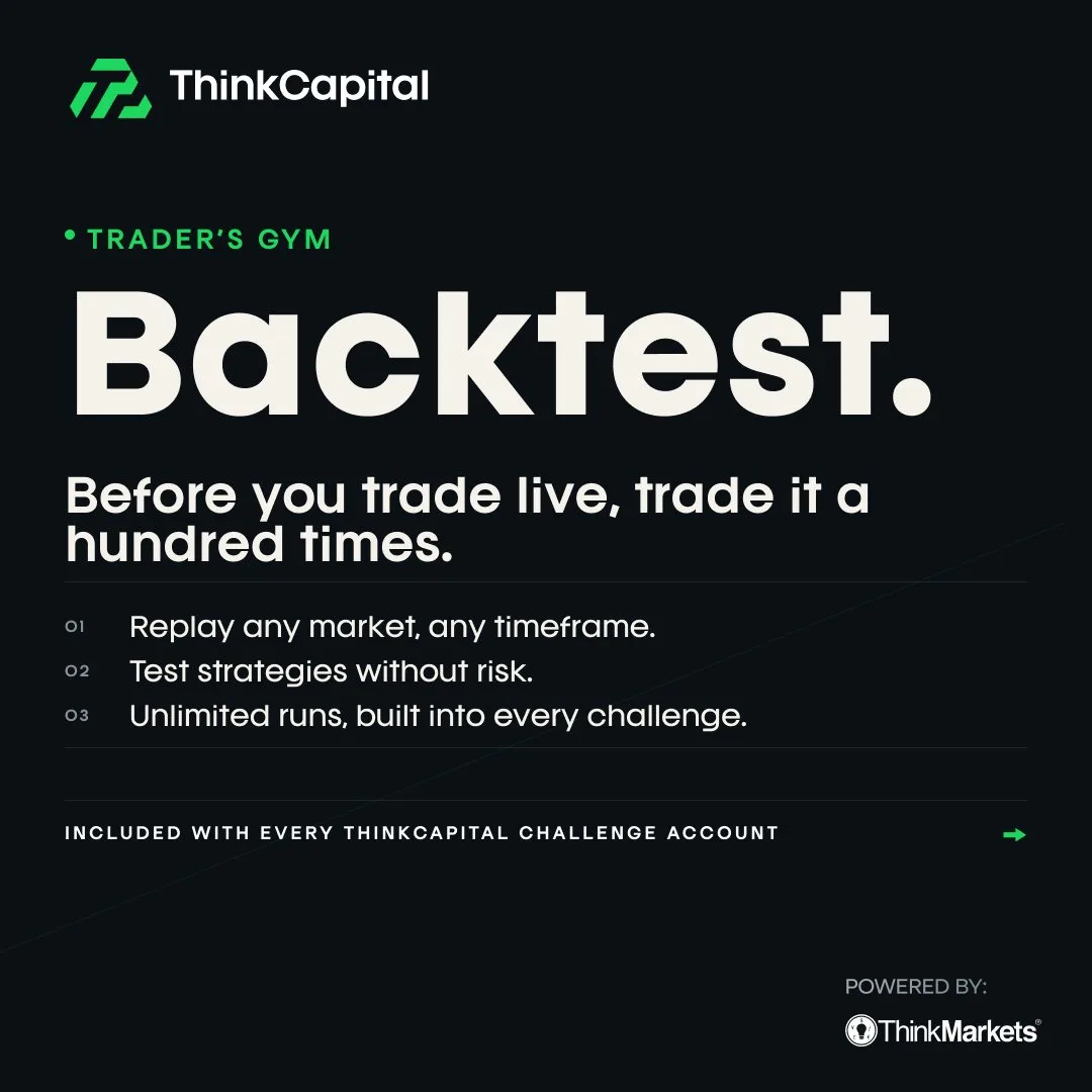 Dostęp do Traders Gym jest zapewniony wszystkim traderom Think Capital, co umożliwia im testowanie każdej strategii przed zainwestowaniem realnych środków na koncie prop tradingowym.