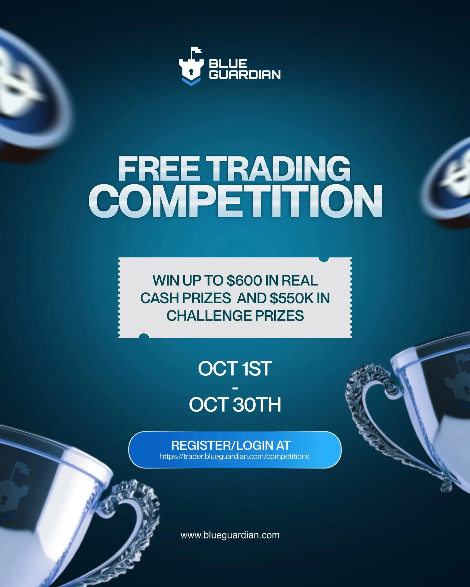 Blue Guardian ogłasza darmowy turniej tradingowy. Uczestnicy mają szansę na zdobycie nagród pieniężnych o łącznej wartości do $600 oraz kont challenge o łącznej wartości $550,000!