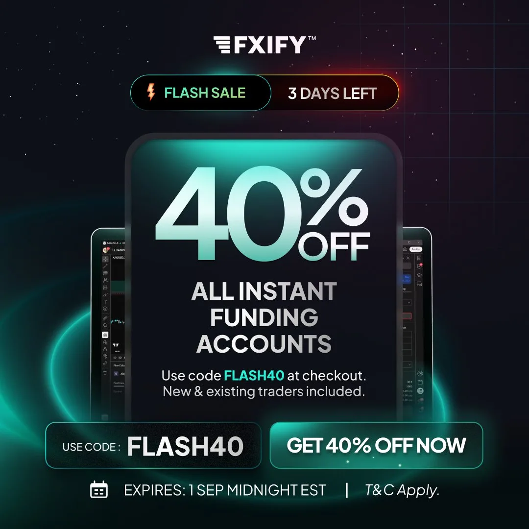 Prop firma Fxify ogłosiła błyskawiczną wyprzedaż, oferując 40% zniżki na wszystkie konta Instant Funding.