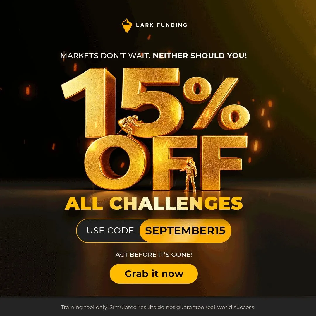 Prop firma Lark Funding ogłasza wrześniową promocję! Wszyscy traderzy mogą skorzystać z 15% zniżki na wszystkie challenge.