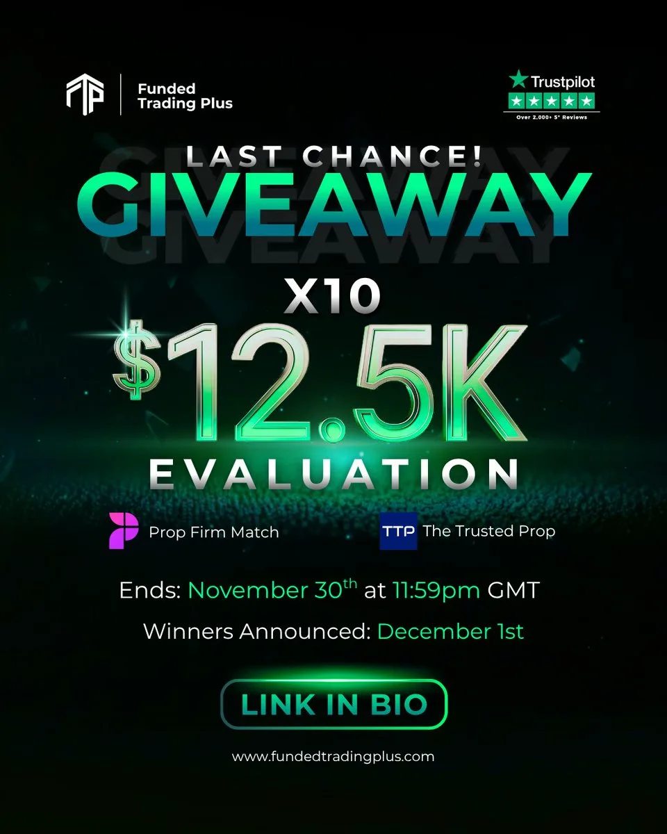 Funded Trading Plus daje ostatnią szansę na wzięcie udziału w konkursie, w którym można wygrać jedno z 10 wyzwań FT+ o wartości $12.5k każde.