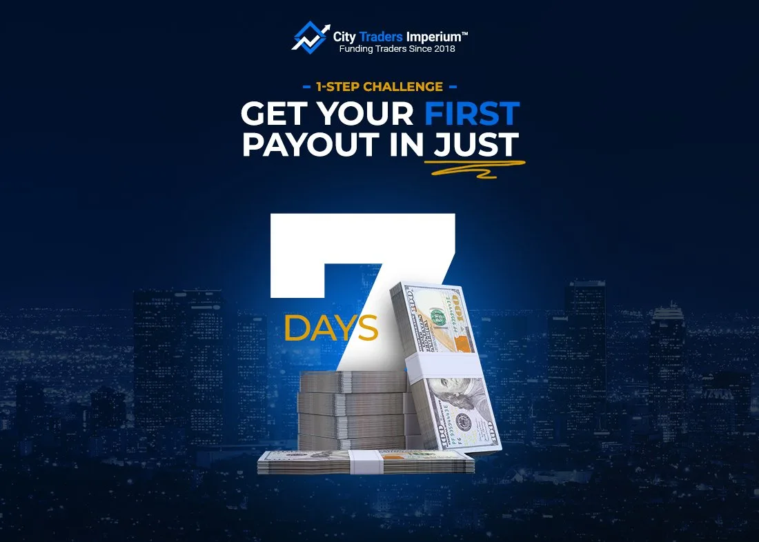 City Traders Imperium ogłasza skrócenie czasu oczekiwania na pierwszą wypłatę! Teraz, jeśli jesteś profitowy, możesz otrzymać swoje pieniądze już po 7 dniach.1-Step Challenge.