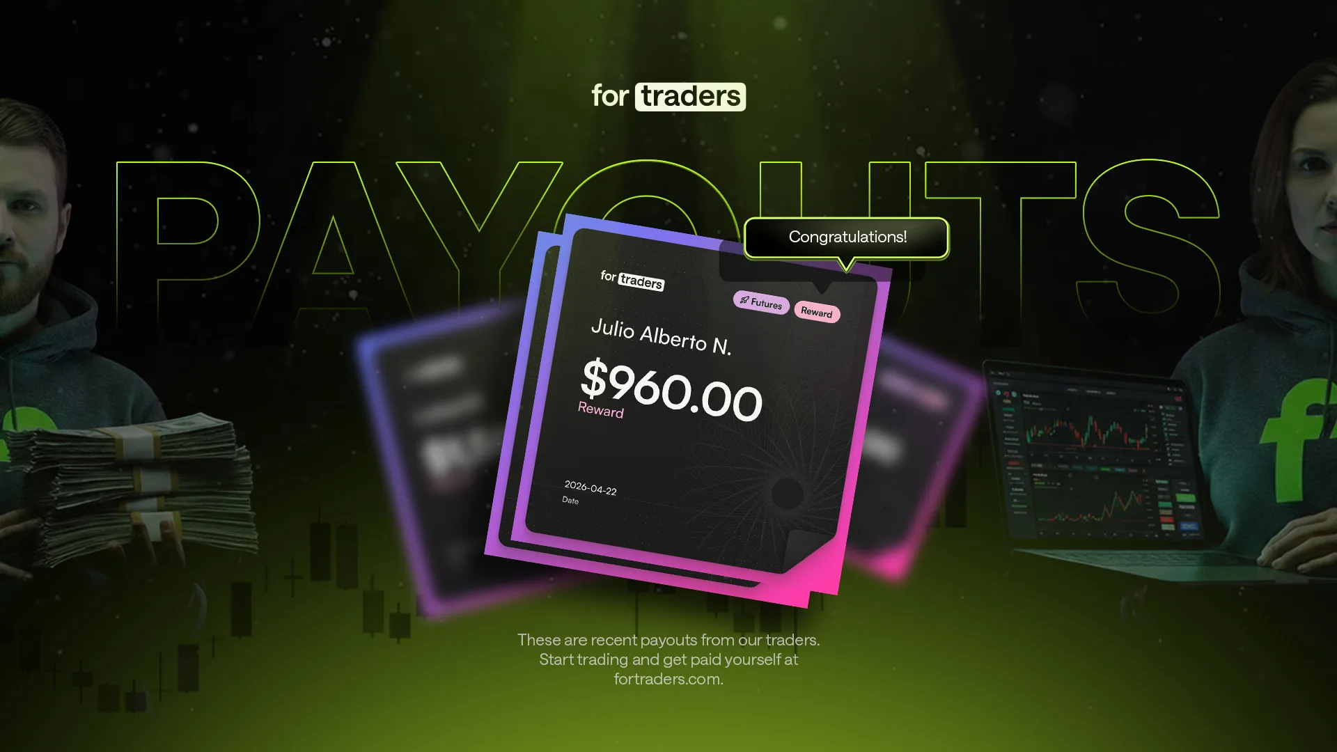 Firma proptradingowa For Traders ogłasza swoją dziewiątą wypłatę, tym razem dla tradera Julio z Hiszpanii, który osiągnął zysk w wysokości $960 na koncie Futures.