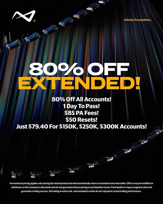 Apex Trader Funding przedłuża swoją wyprzedaż! Skorzystaj z obniżki 80% na wszystkie konta ewaluacyjne i ciesz się opłatami Lifetime PA w wysokości zaledwie 85$!