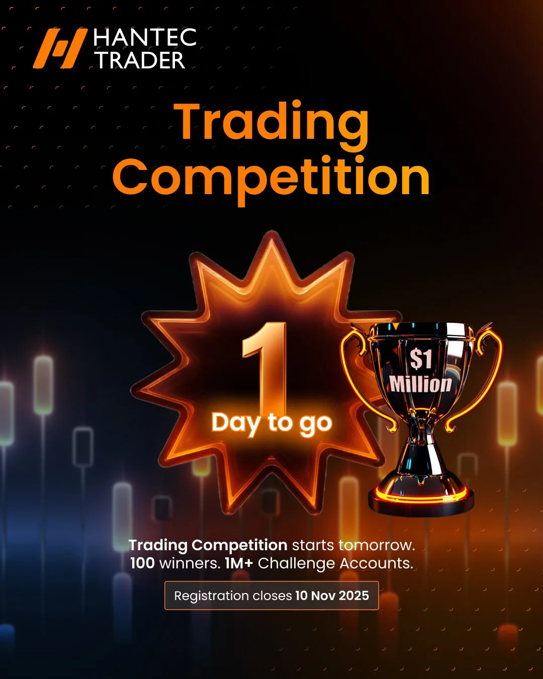 Hantec Trader organizuje turniej tradingowy, w którym do wygrania są konta Challenge o łącznej wartości ponad $1,000,000. Zostanie wyłonionych 100 zwycięzców.