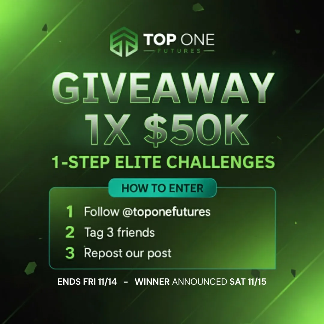 Top One Futures, prop firma z branży futures, zaprasza do wzięcia udziału w konkursie (giveaway), w którym do wygrania jest konto o wartości 50 000 USD!