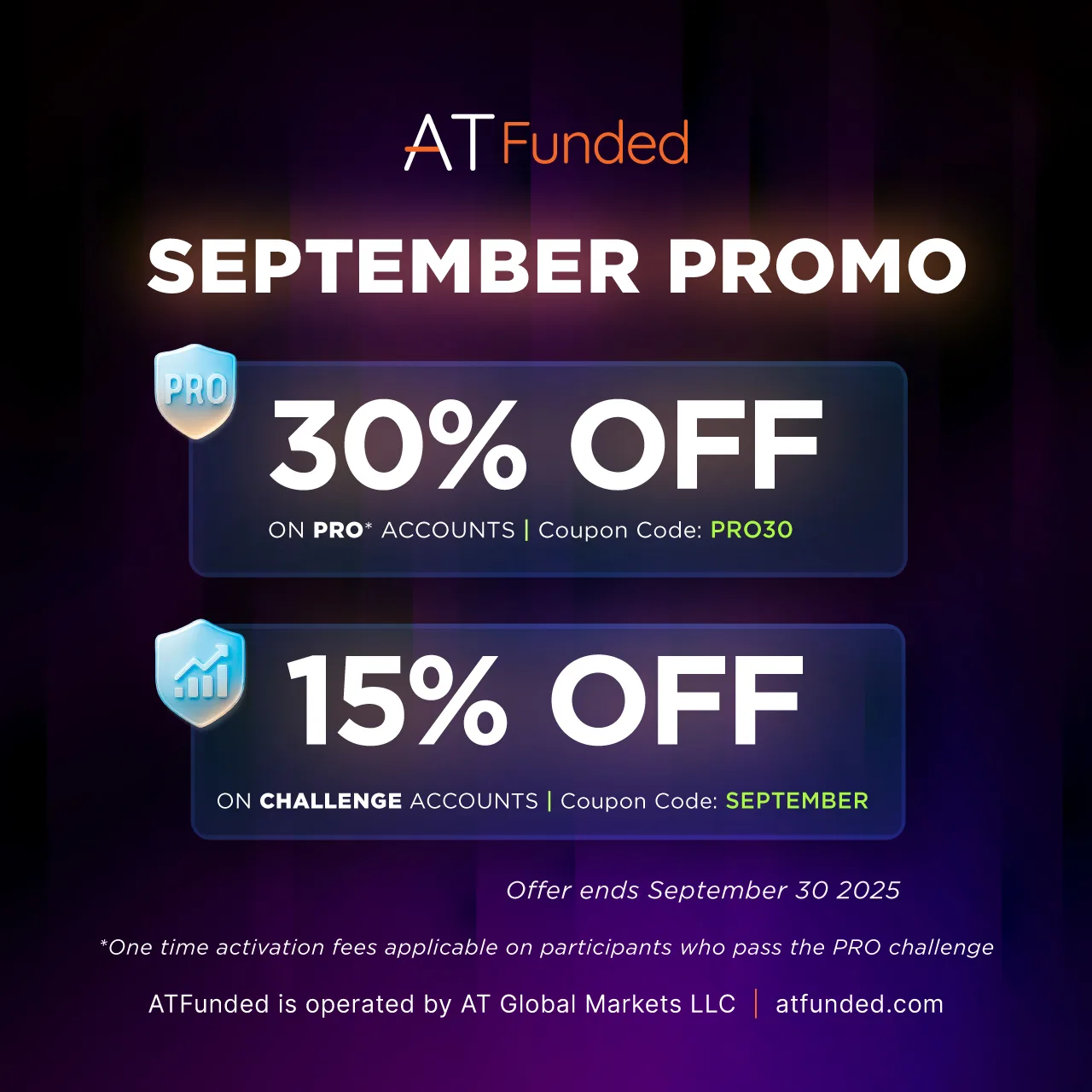 Prop firma ATFunded kończy dziś swoją wrześniową promocję, oferując atrakcyjne zniżki na wyzwania tradingowe.