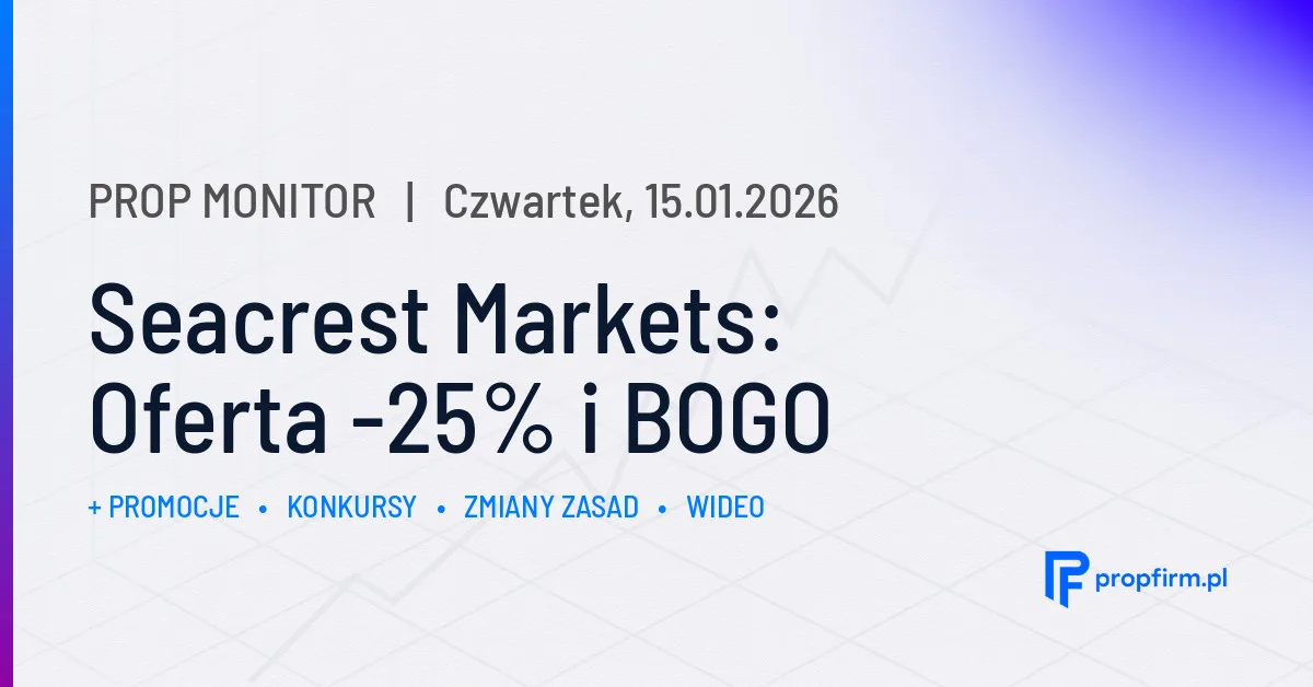 Początek stycznia 2026 przynosi traderom liczne okazje do oszczędności poprzez promocyjne oferty od prop firm. Wśród kluczowych możliwości znalazły się m.in. zniżki do 25%, bonusy za wyniki oraz usprawnione procesy weryfikacji.
